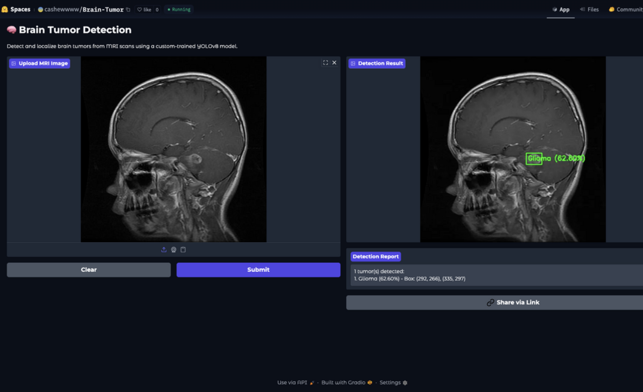 This project focuses on detecting and classifying brain tumor types from MRI images using deep learning techniques. The dataset is annotated in YOLO format and supports two primary tasks: identifying the location of the tumor through object detection, and classifying the tumor